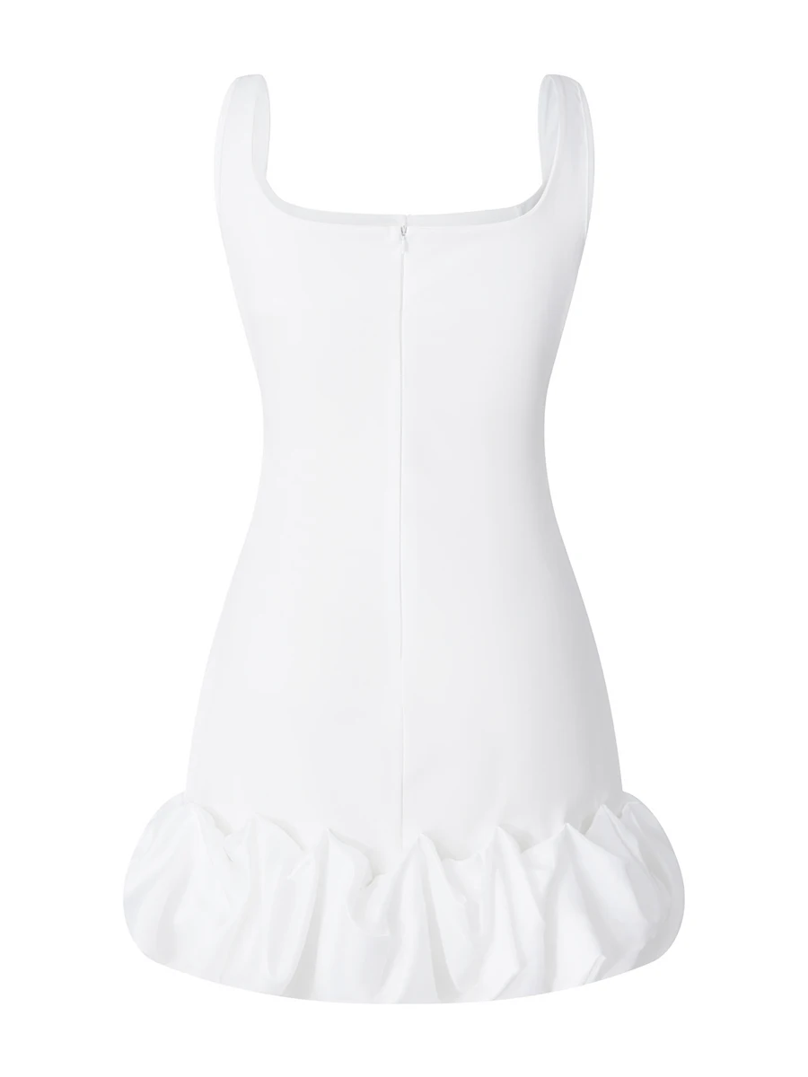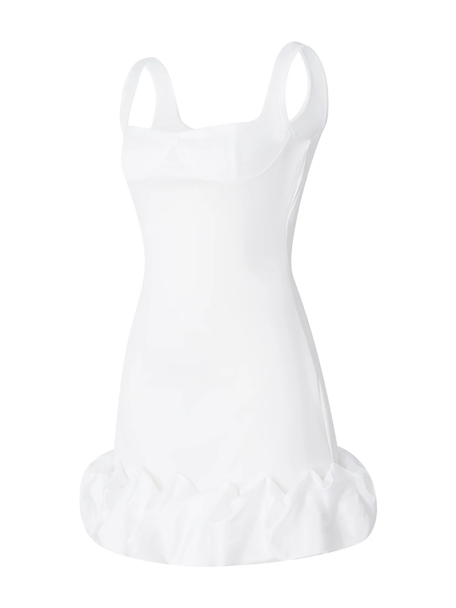 Women Vintage Dress Spaghetti Strap Square Neck Bodycon Bubble Mini Dress Party Evening Sexy Elegant Dresses Summer Clothes